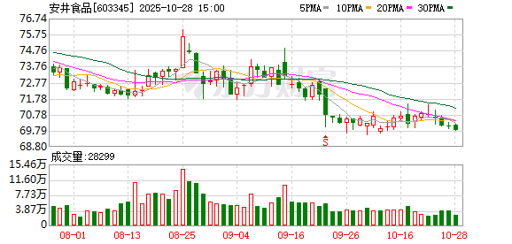 北京商报讯 10月28日,安井食品发布2025年三季报,公司第三季度实现营业收入37.66亿元,同比增长6.61%;归母净利润为2.73亿元,同比增长11.8%。前三季度实现营业收入113.71亿元,同比增长2.66%;归母净利润为9.49亿元,同比下降9.35%。